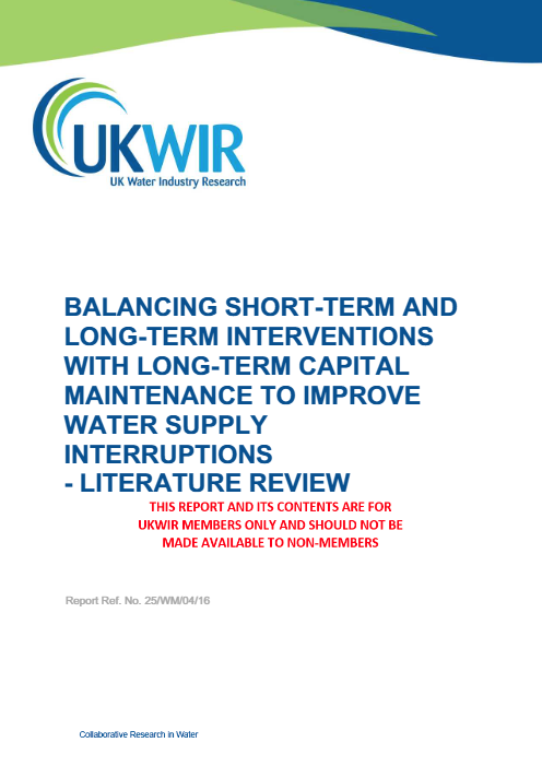 Latest reportBalancing Short-Term and Long-Term Interventions with long term capital maintenance to improve water supply interruptions – literature reviewLEARN MORE |